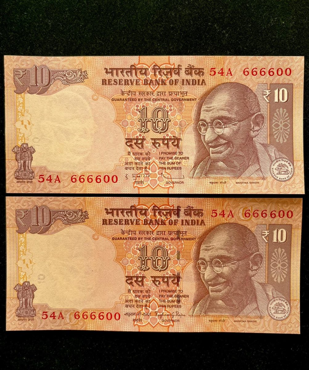 Rs 10 INDIA Banknote SEMI FANCY TWIN SET 54A 666600