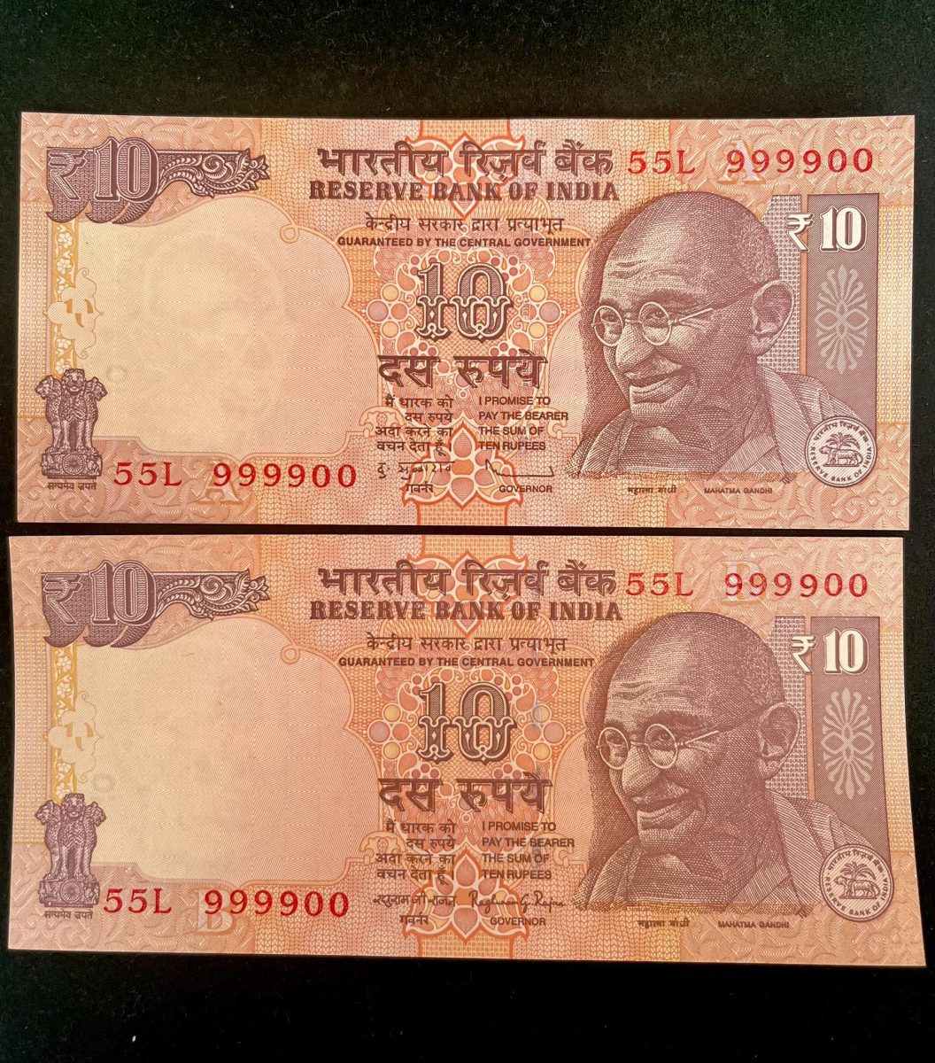 Rs 10 INDIA Banknote SEMI FANCY TWIN SET 55L 999900