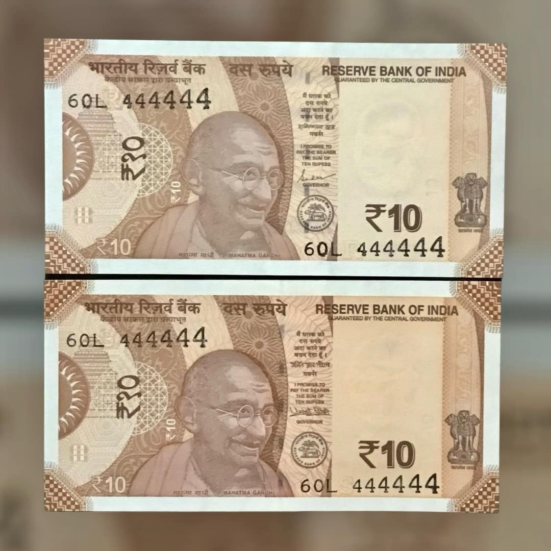 Rs 10 INDIA Banknote SEMI FANCY TWIN SET 60L 444444 UNIQUE AND RARE