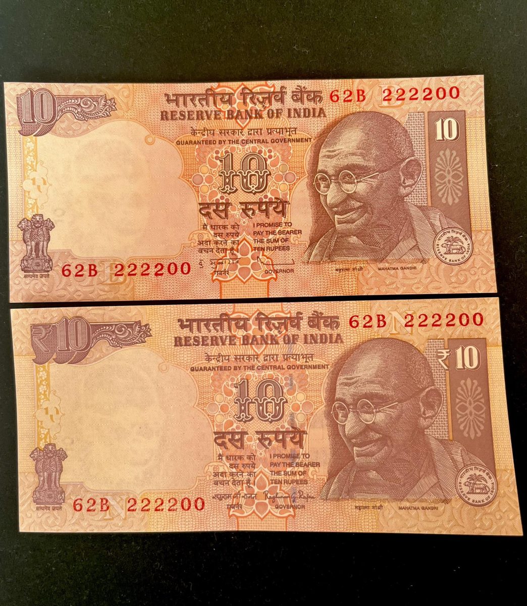 Rs 10 INDIA Banknote SEMI FANCY TWIN SET 62B 222200
