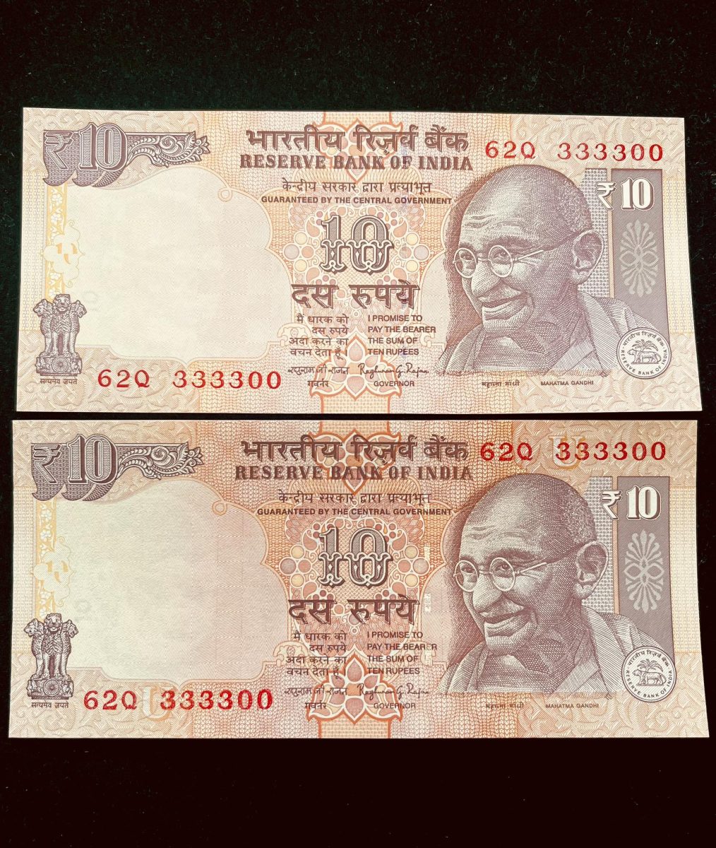 Rs 10 INDIA Banknote SEMI FANCY TWIN SET 62Q 333300