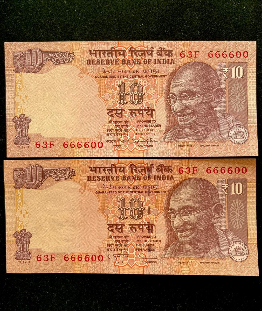 Rs 10 INDIA Banknote SEMI FANCY TWIN SET 63F 666600