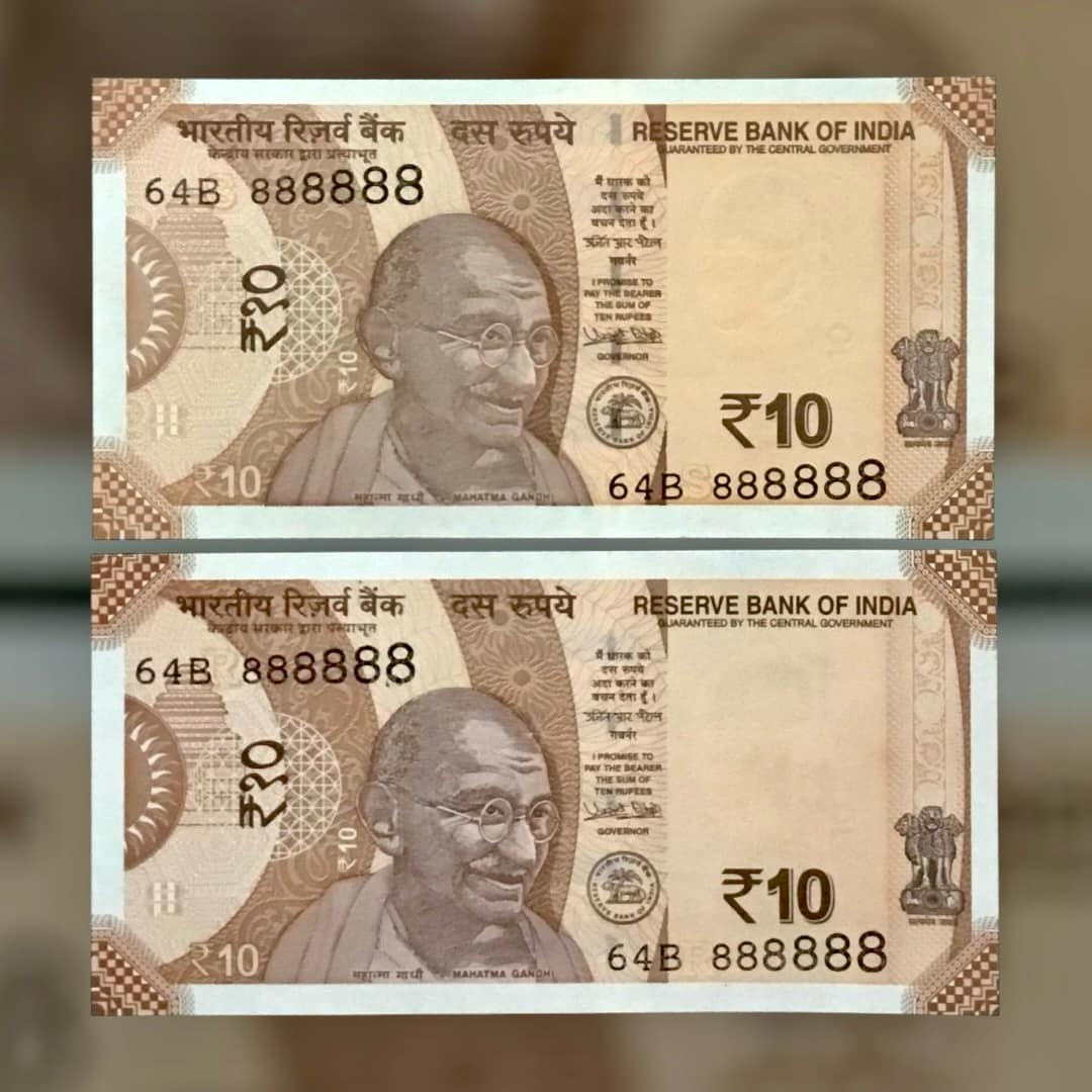 Rs 10 INDIA Banknote SEMI FANCY TWIN SET 64B 888888 UNIQUE AND RARE