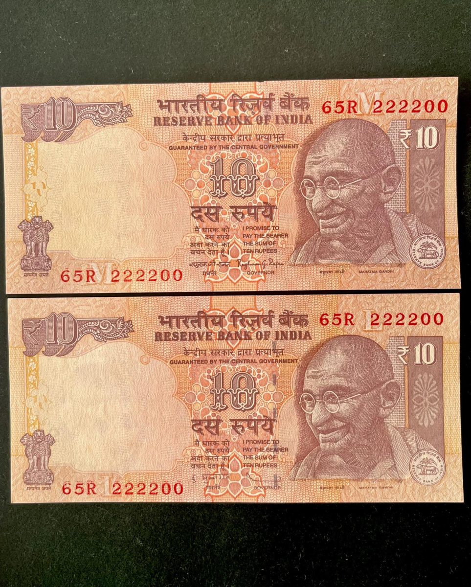 Rs 10 INDIA Banknote SEMI FANCY TWIN SET 65R 222200