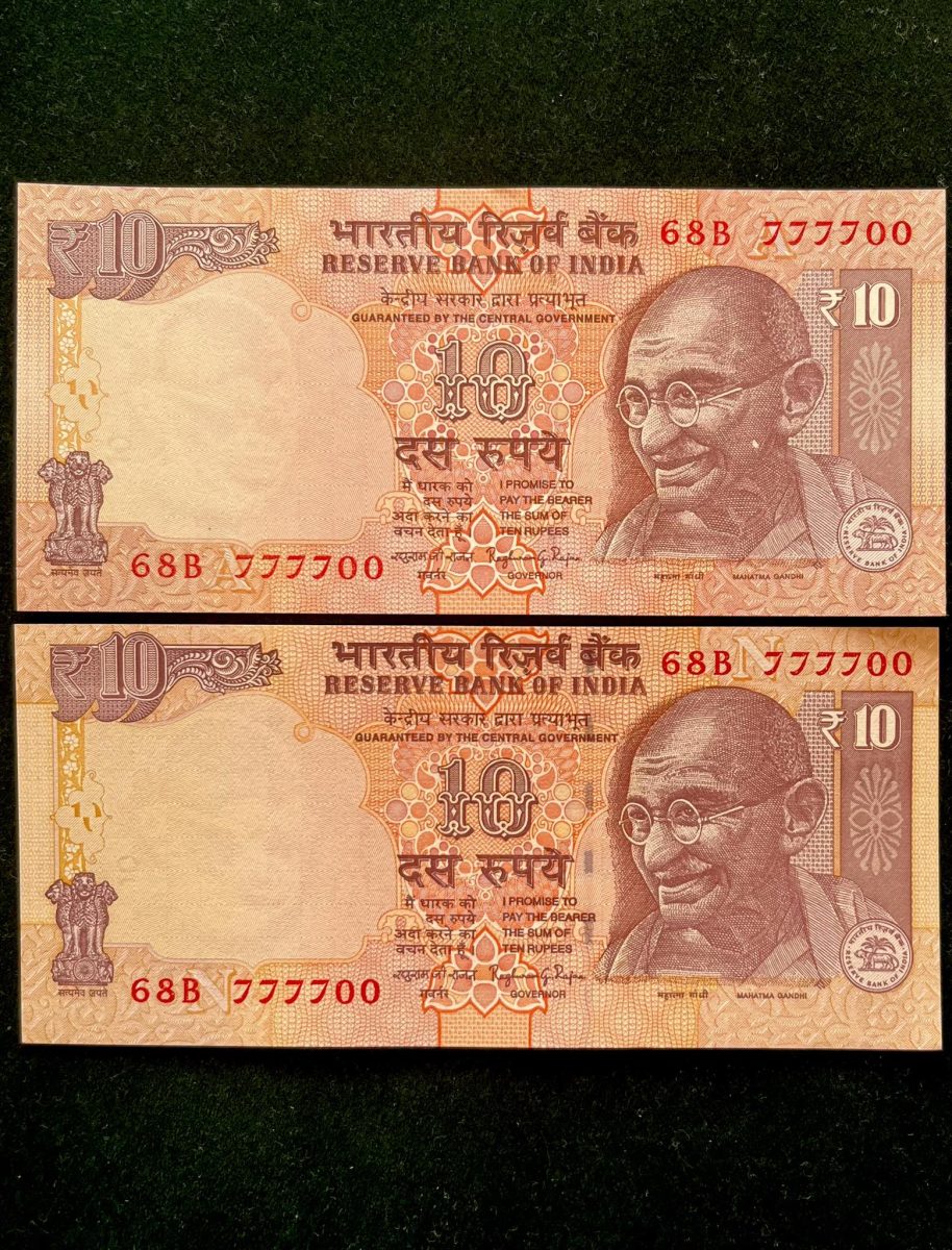 Rs 10 INDIA Banknote SEMI FANCY TWIN SET 68B 777700