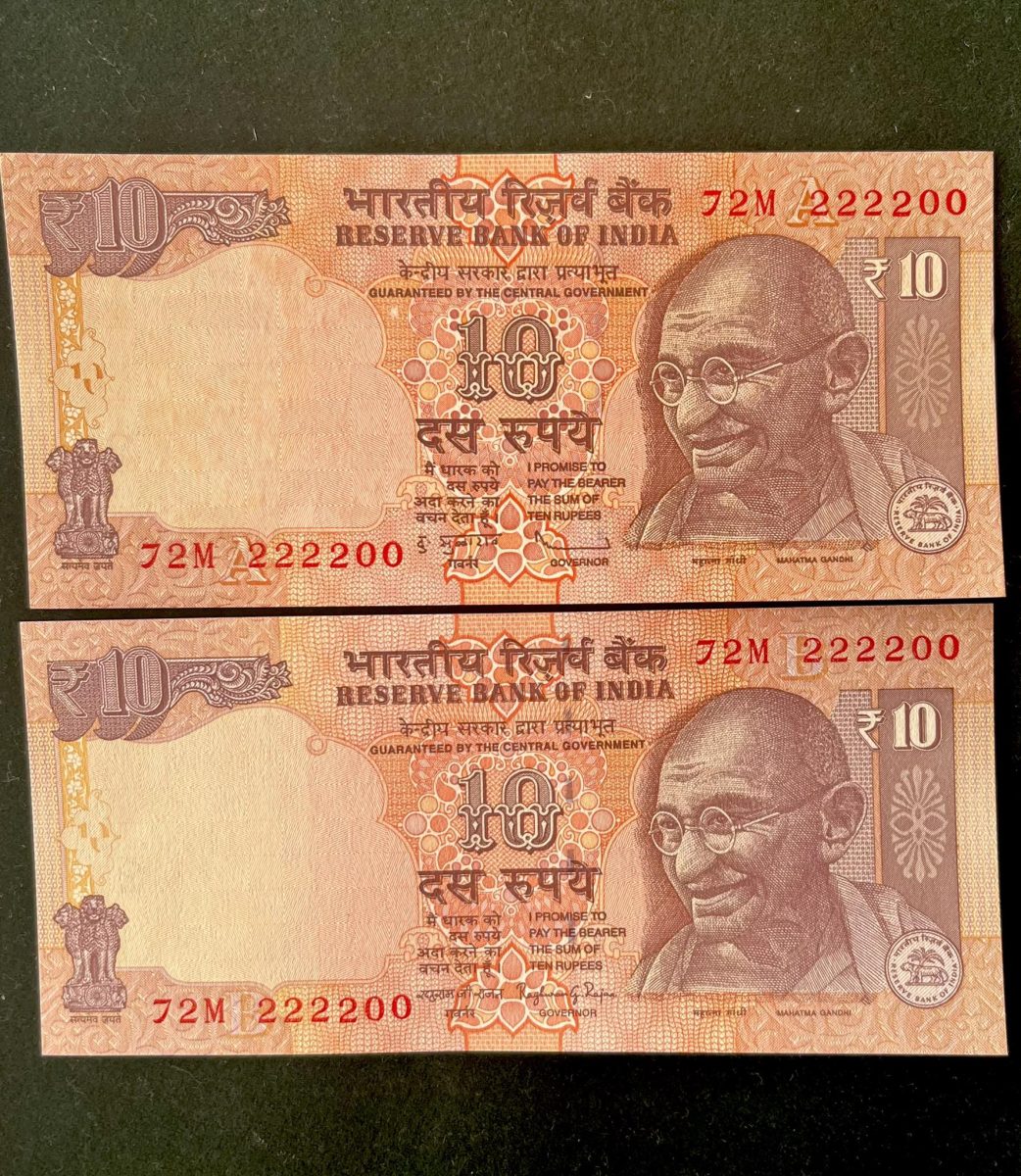 Rs 10 INDIA Banknote SEMI FANCY TWIN SET 72M 222200