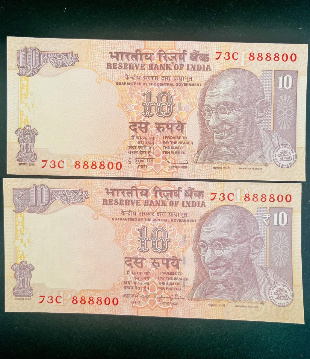 Rs 10 INDIA Banknote SEMI FANCY TWIN SET 73C 888800