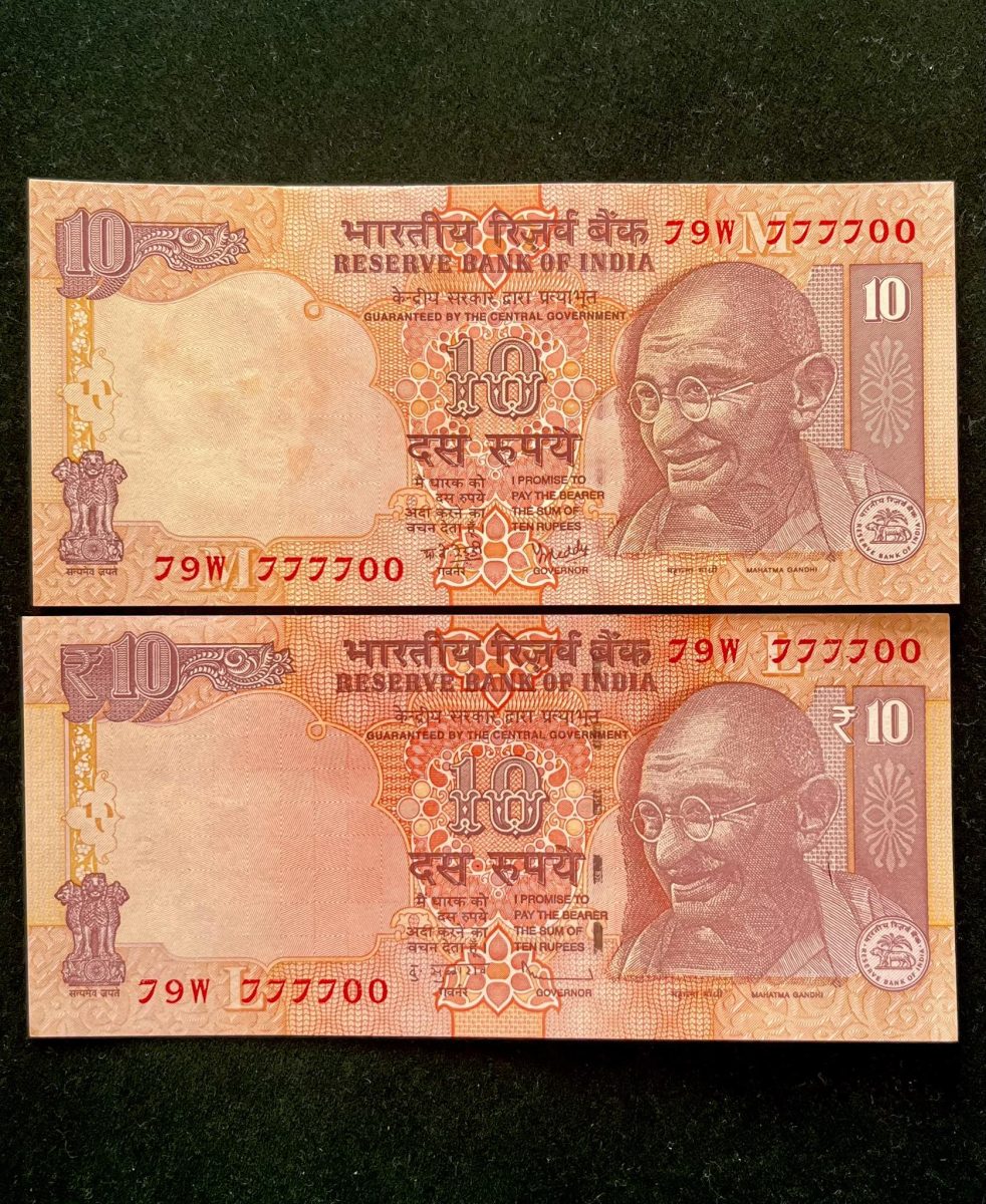 Rs 10 INDIA Banknote SEMI FANCY TWIN SET 79W 777700