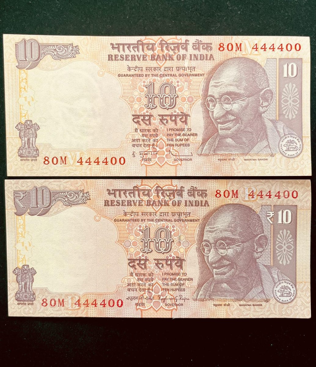 Rs 10 INDIA Banknote SEMI FANCY TWIN SET 80M 444400