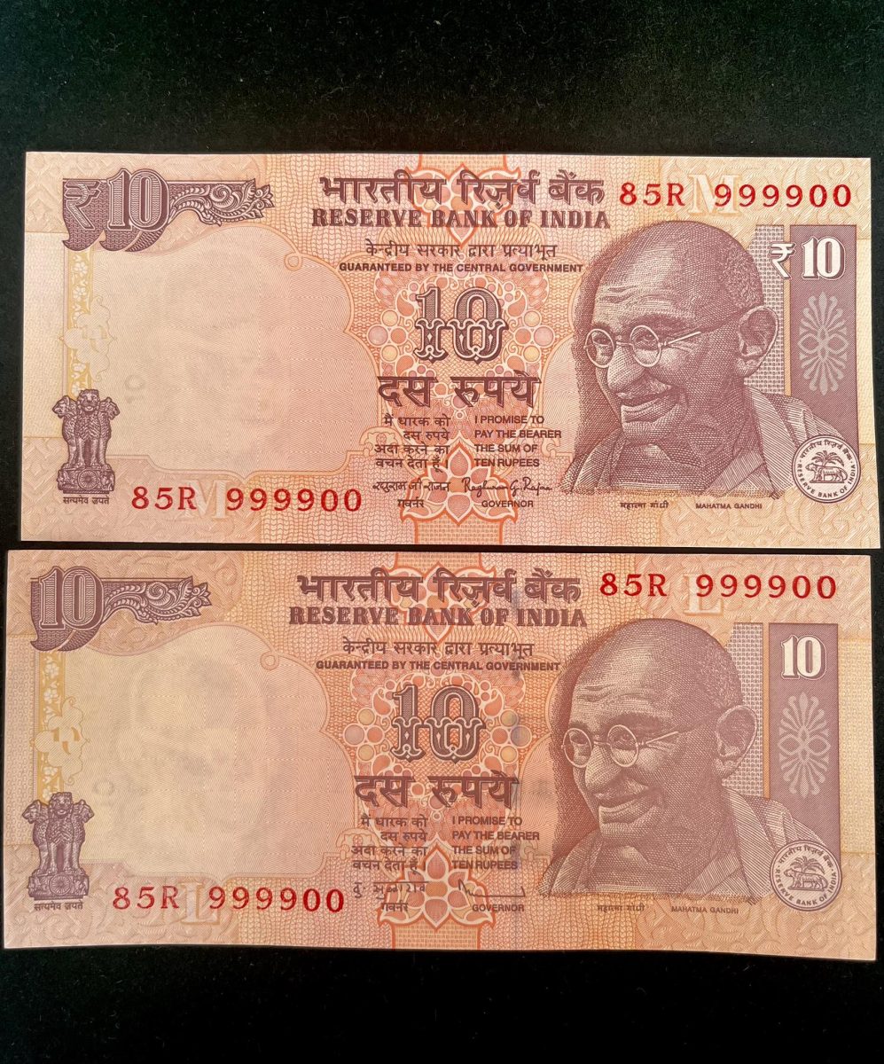 Rs 10 INDIA Banknote SEMI FANCY TWIN SET 85R 999900