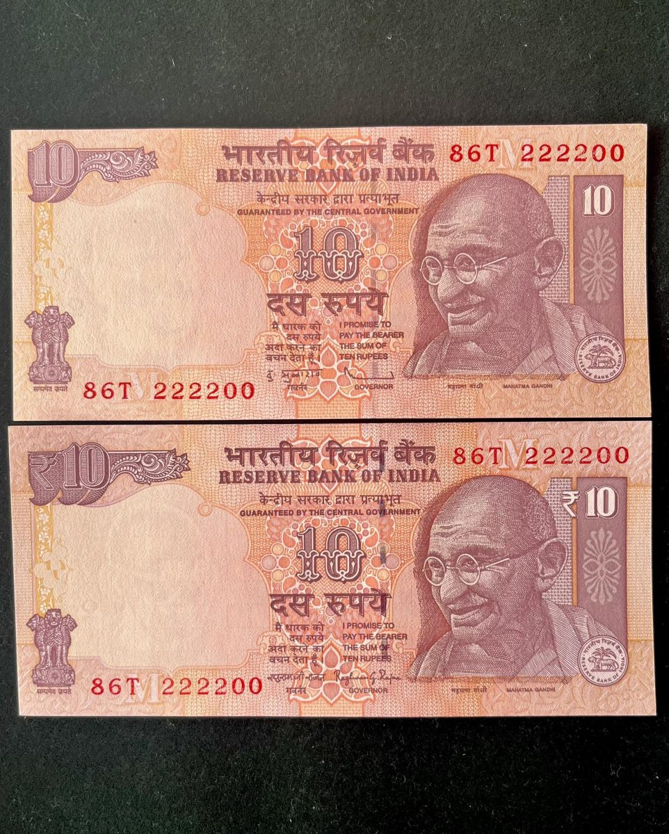 This collectible set features a rare Rs 10 India banknote twin pair with the same number and prefix, making it a unique addition to any currency collection. Issued by the Reserve Bank of India, these banknotes hold a special place in economic history, showcasing the art and evolution of paper money. Dating back to recent times, these notes offer a glimpse into India’s financial landscape. With a focus on the art of banknote collection, this set presents a valuable opportunity for both amateur and experienced collectors to delve into the world of numismatics. The twin pair’s pristine condition and matching details add to its appeal, making it a sought-after item for enthusiasts looking to expand their collection with a rare and well-maintained piece.