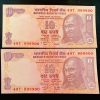 Rs 10 INDIA Banknote SEMI FANCY TWIN SET
