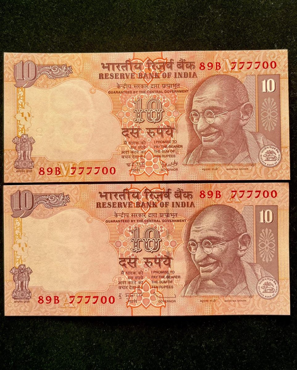 Rs 10 INDIA Banknote SEMI FANCY TWIN SET 89B 777700