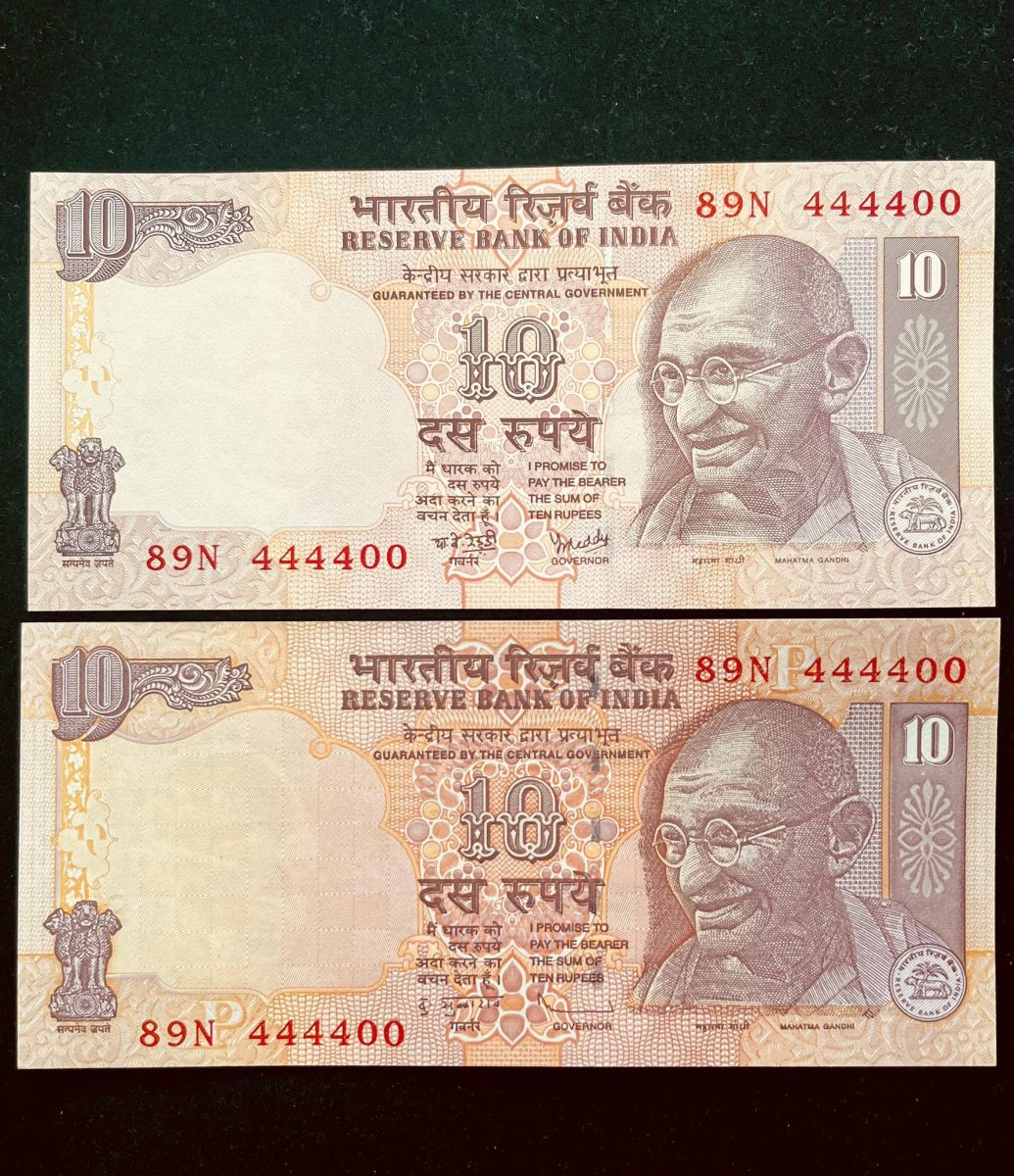 Rs 10 INDIA Banknote SEMI FANCY TWIN SET 89N 444400