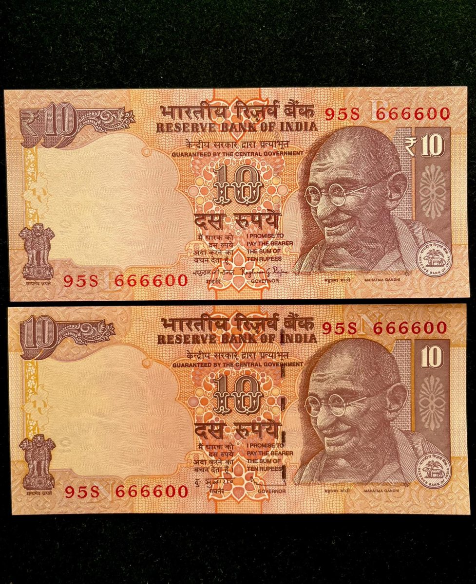 Rs 10 INDIA Banknote SEMI FANCY TWIN SET 95S 666600