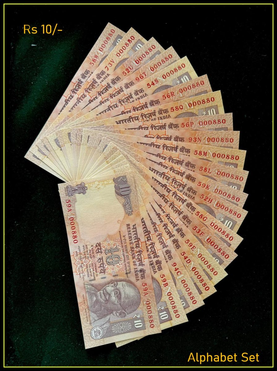 Rs 10 INDIA BANKNOTE SET 000880 GEM UNC UNIQUE 20 Note Complete Alphabet Set GEM UNC
