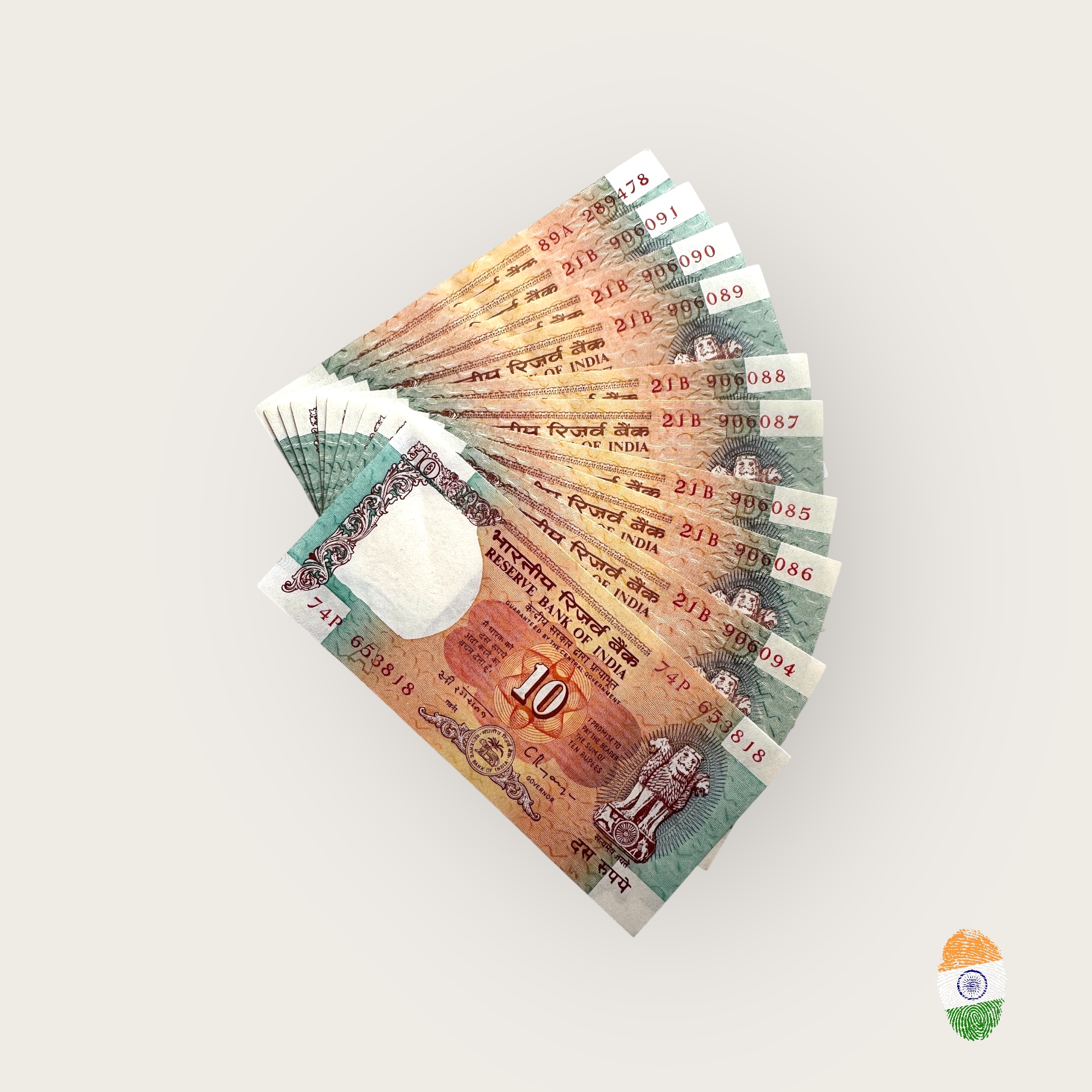 Rs 10 India Banknote Shalimar Garden Issue UNC Issue 1990s 10 note Lot Crisp