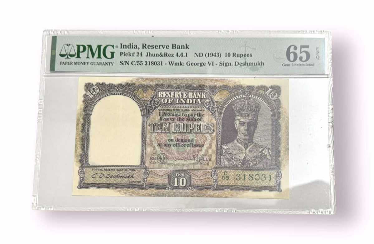 Rs 10 King George VI British India Issue PMG Graded 65 EPQ Very Unique and Rare