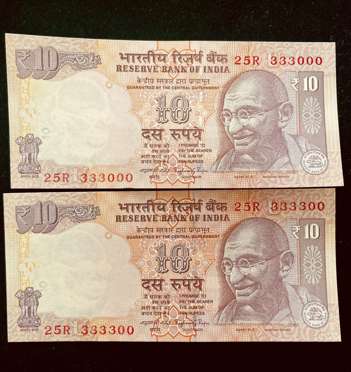 Rs 10 INDIA Banknote SEMI FANCY TWIN SET 25R 333300