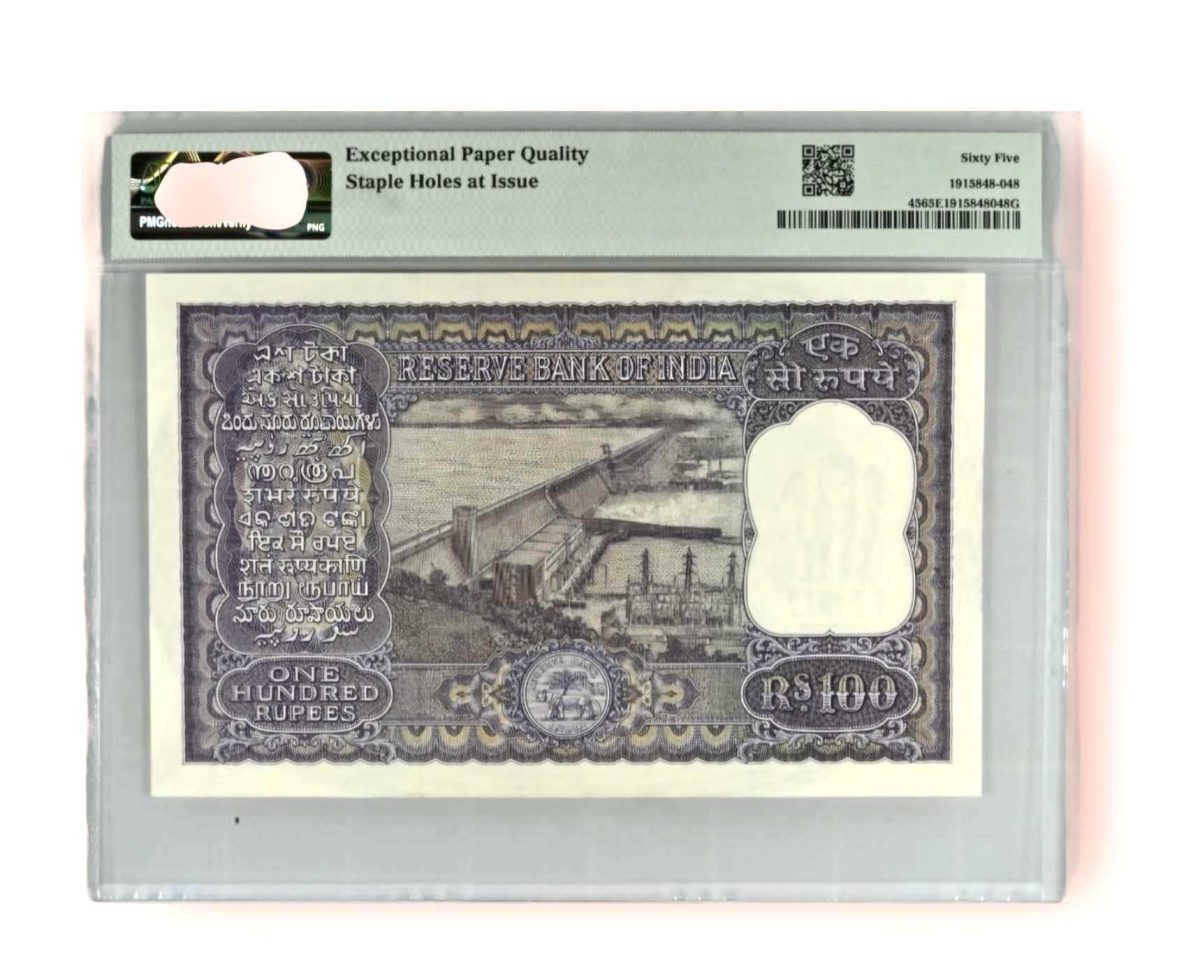 Rs 100 Big Dam Issue PMG Graded 65 EPQ P C Bhattachariya 1960s Issue Unique and Rare