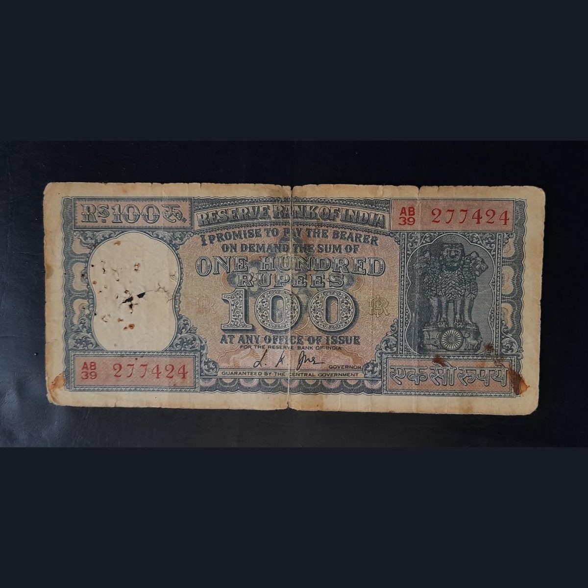 Rs 100 diamond issue very rare note signature L.K. Jha condition as image WEAK condition Same and s