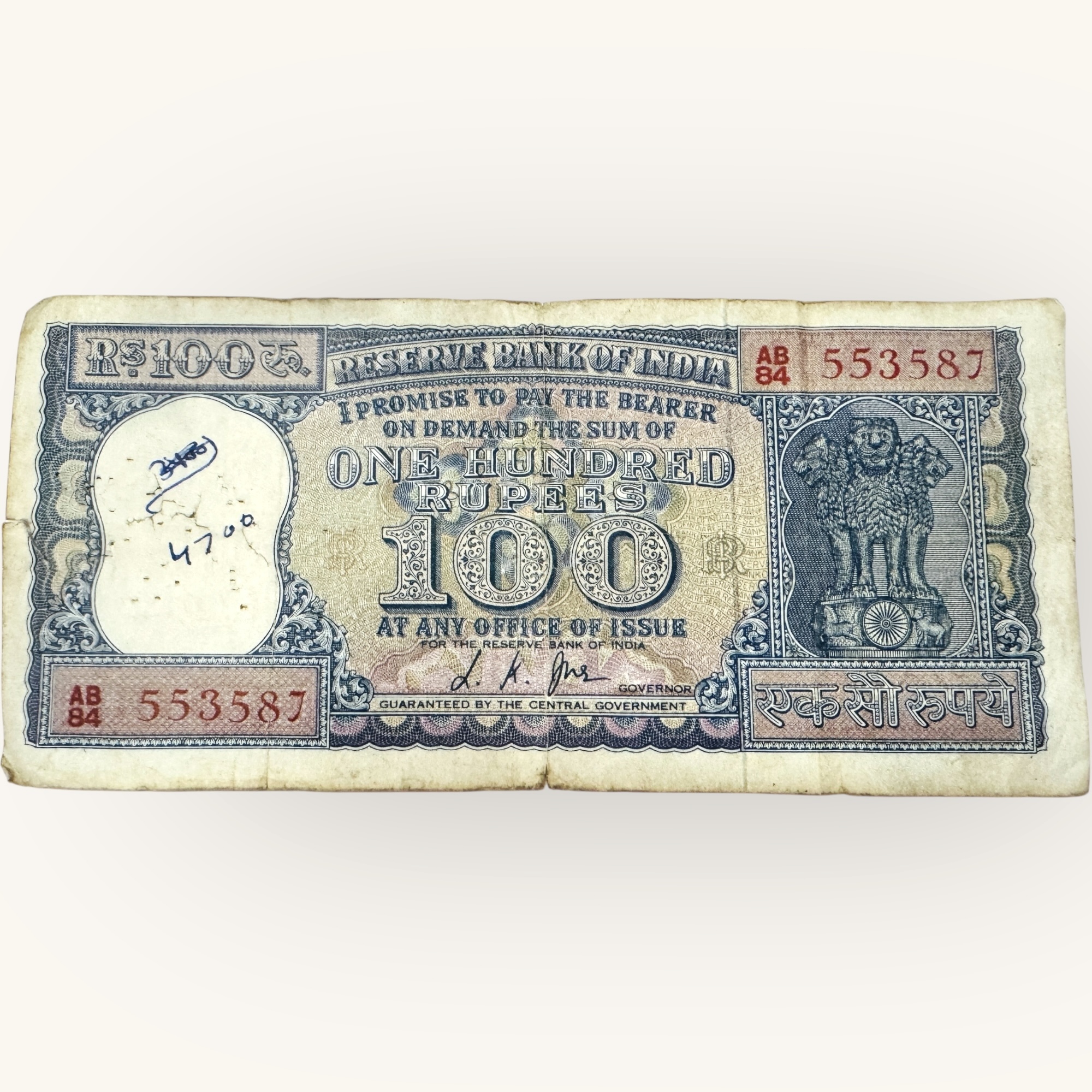 Rs 100 India Banknote 1960s Issue Signed By L K Jha Diamond Issue Unique and Rare