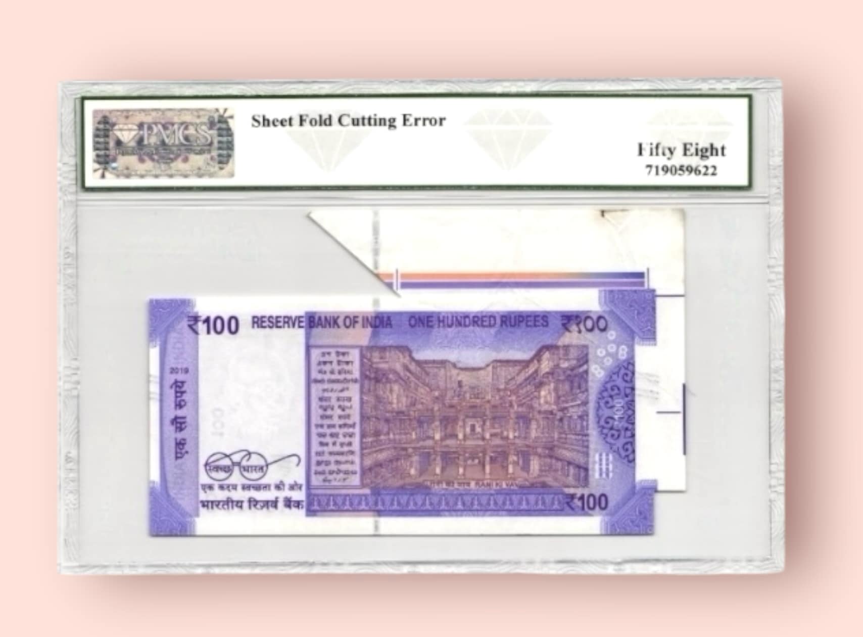 Rs 100 INDIA BANKNOTE GRADED 58 UNC Massive Extra Paper Error Ultra Unique and rare