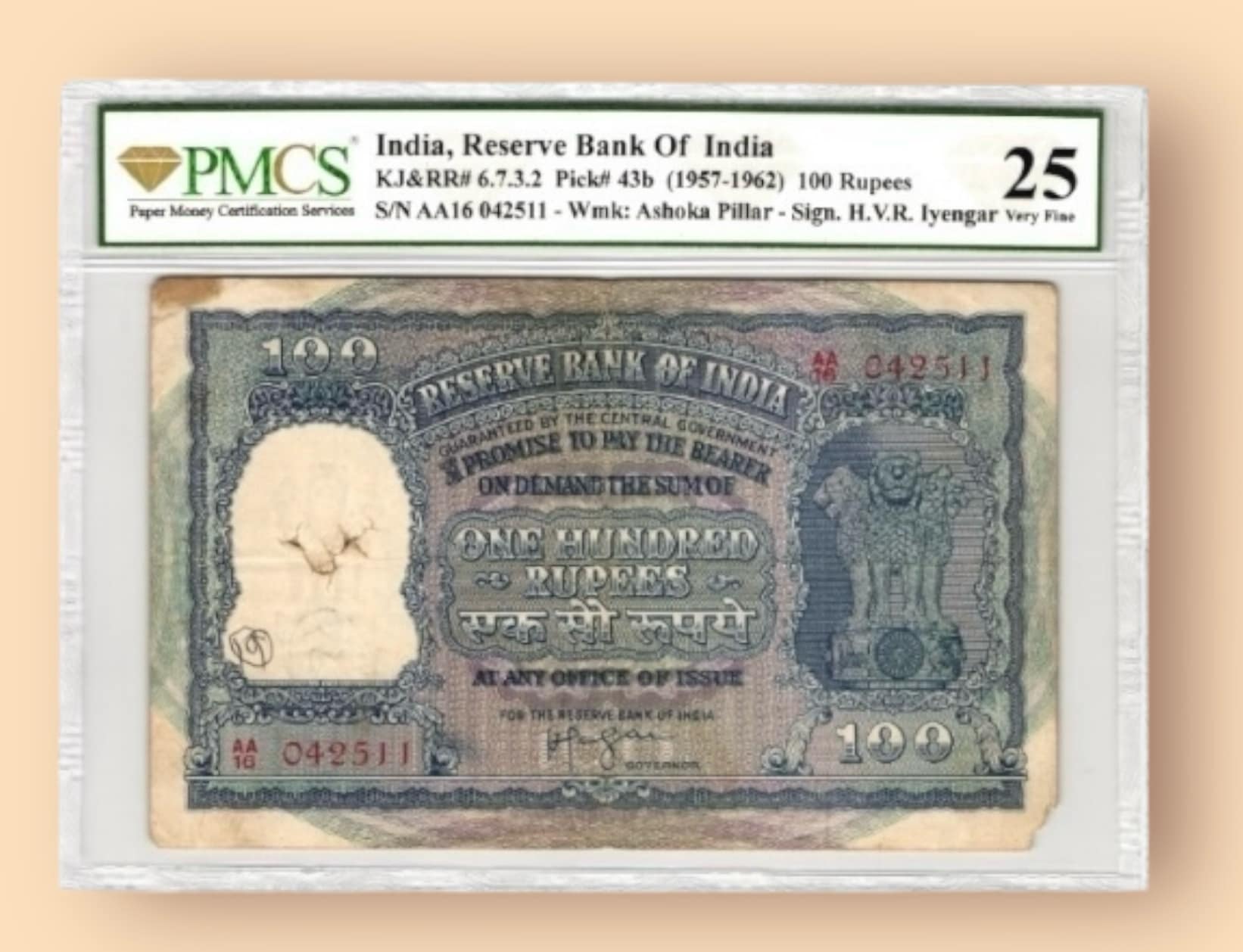 Rs 100 Republic India Banknote GRADED 25 Signed by H V R Iyengar Unique and Rare