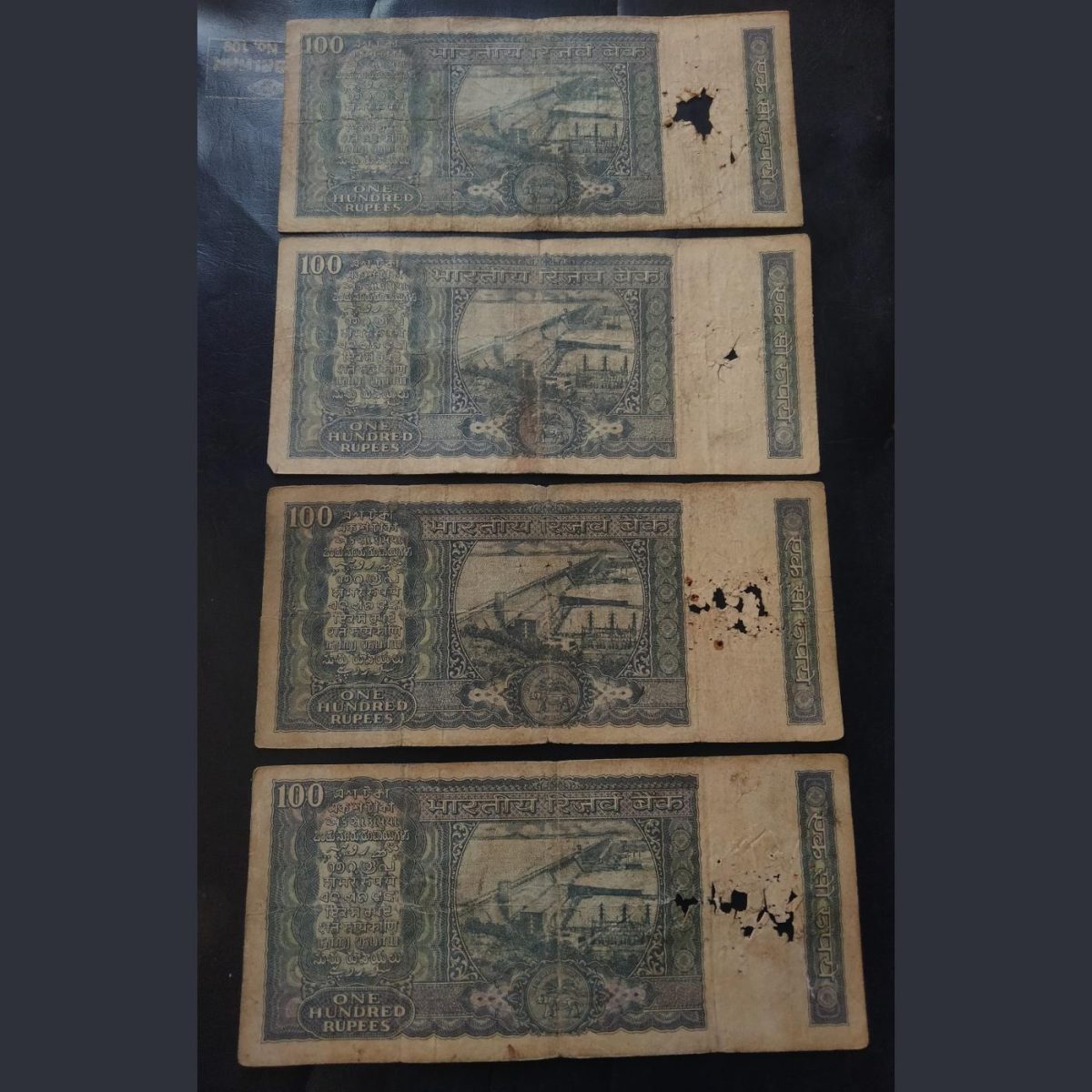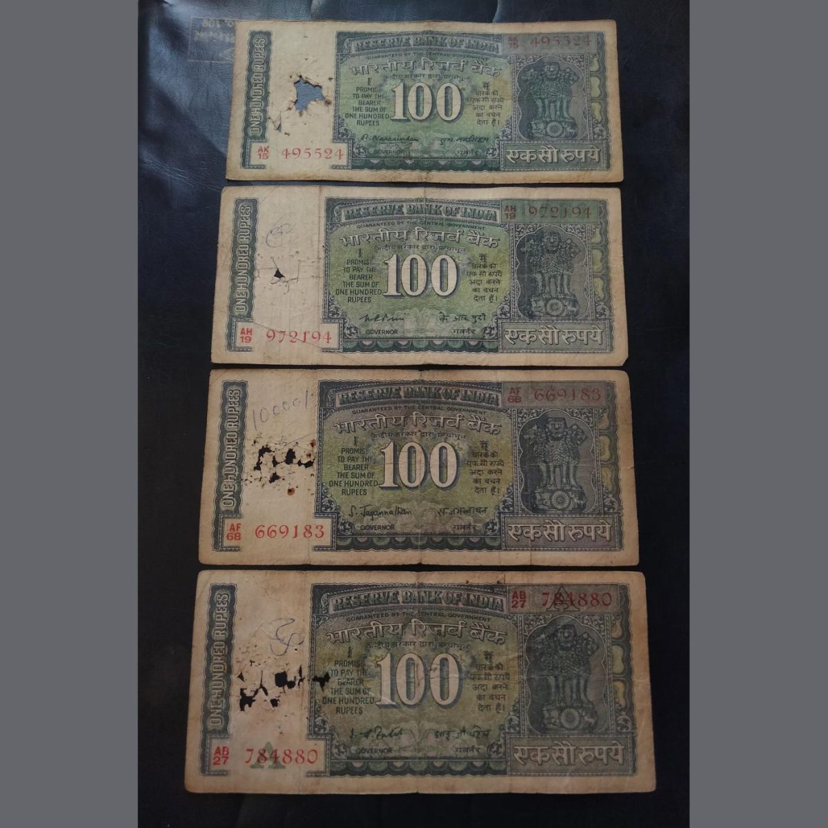 Rs 100 very rare note DAM. ISSUE strips variety signature SET 4. DIFFERENT SIGNATURE Ig patel S.