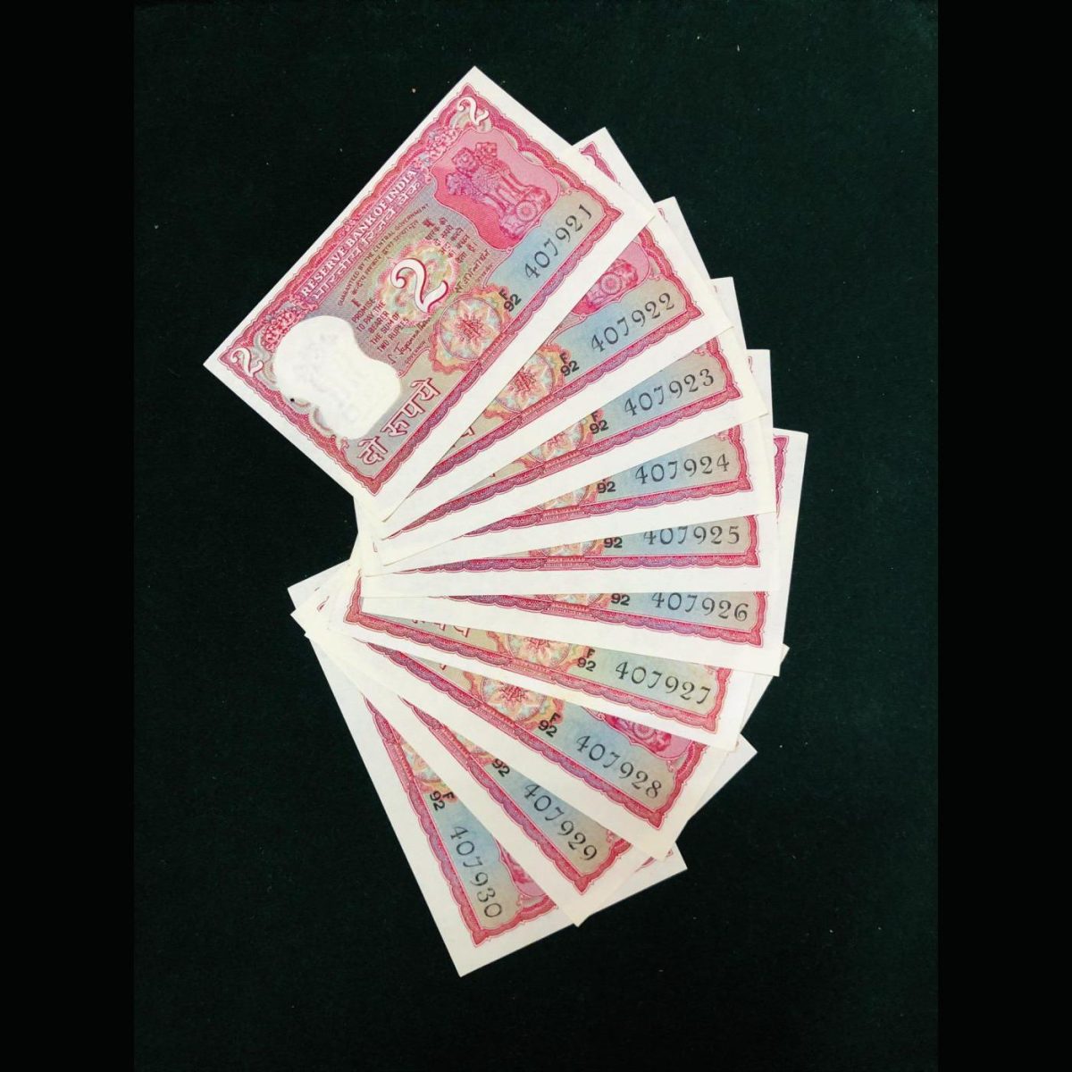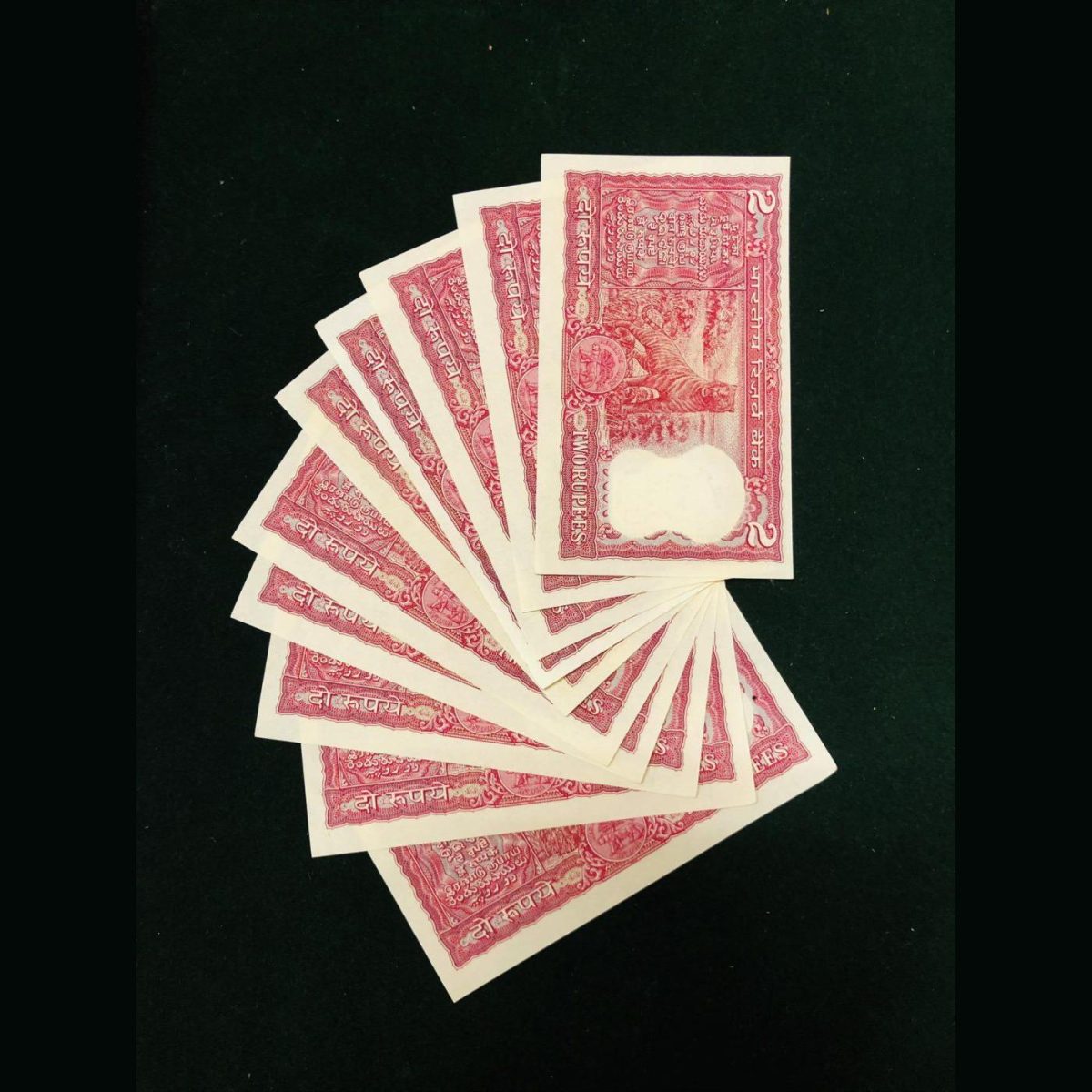 Rs 2 India Banknote Tiger Issue UNC Issue 1960s 10 note Lot Crisp Signed By S Jagganathan