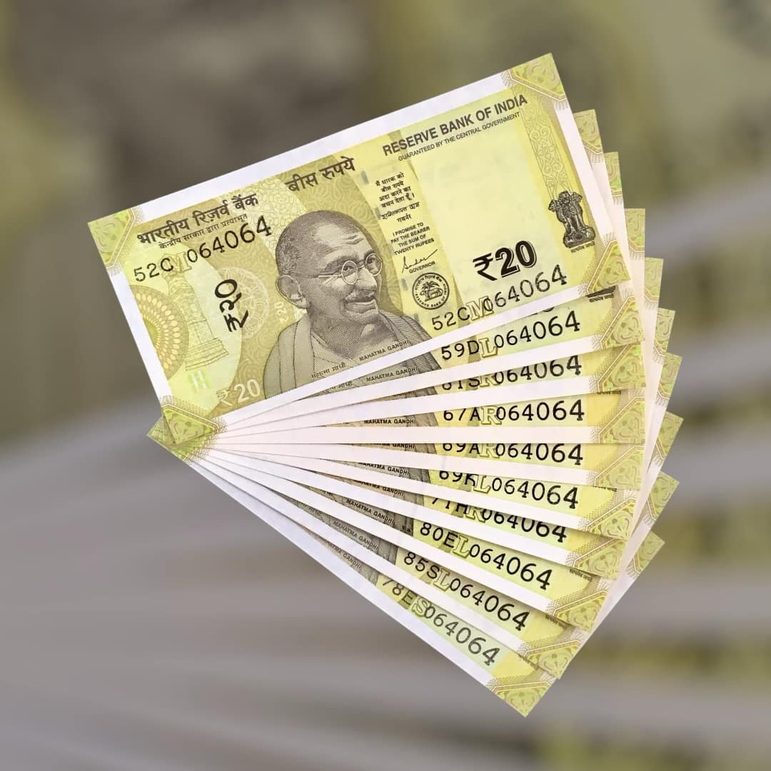 🏷️ Rare set of ten Rs 20 banknotes with the same serial number