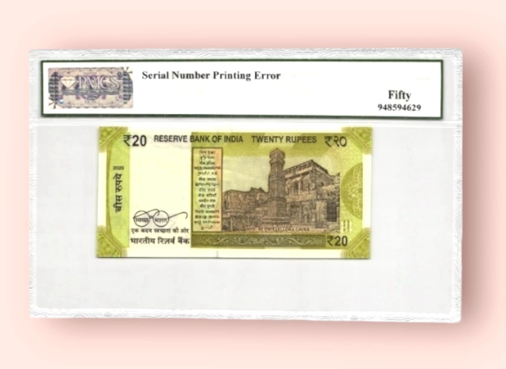 Rs 20 India Banknote Massive Error NO SERIAL Misprint GRADED 50 AUNC Signed by Shaktikanta das Very Unique and Rare