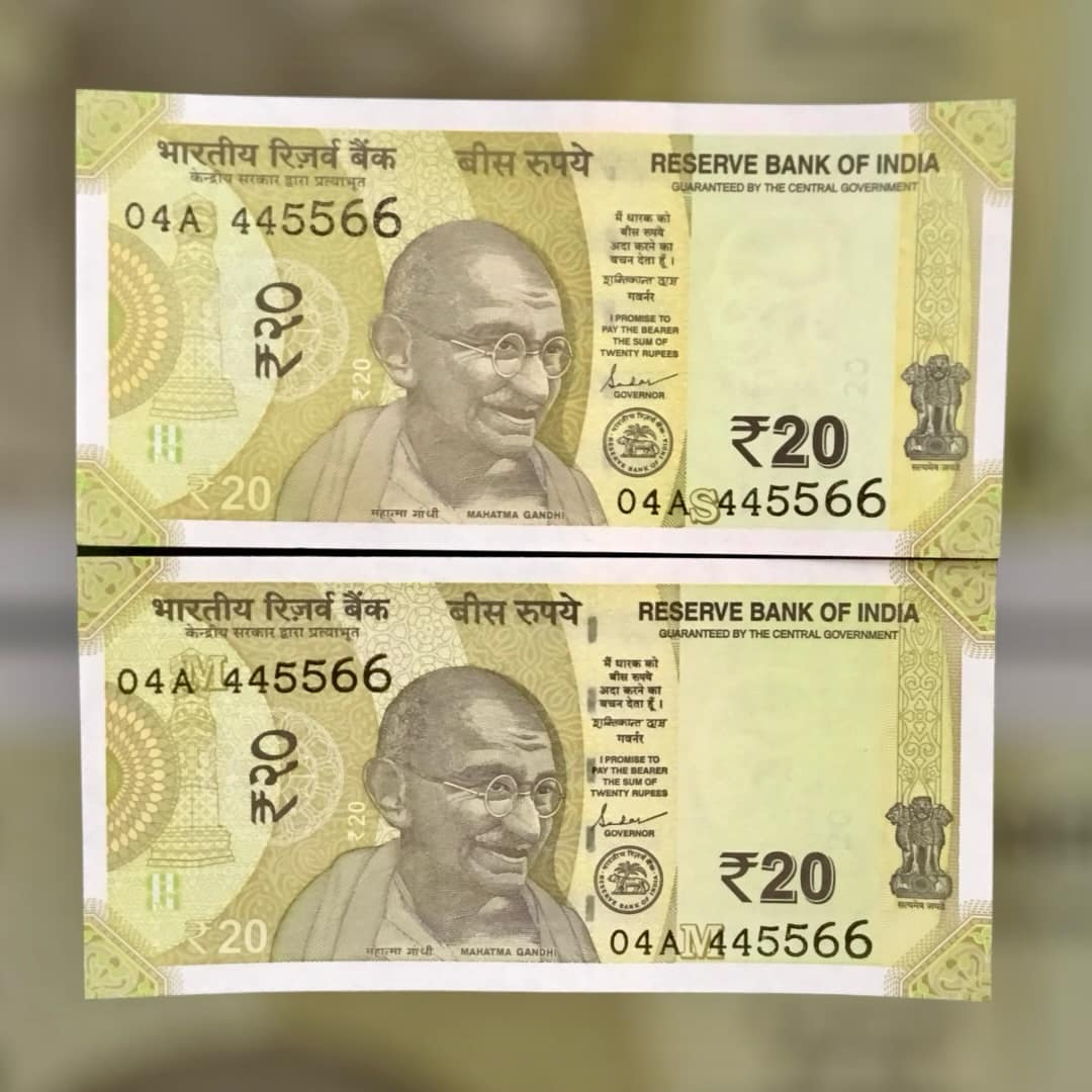 Rs 20 INDIA Banknote SEMI FANCY TWIN SET 04A 445566 UNIQUE AND RARE