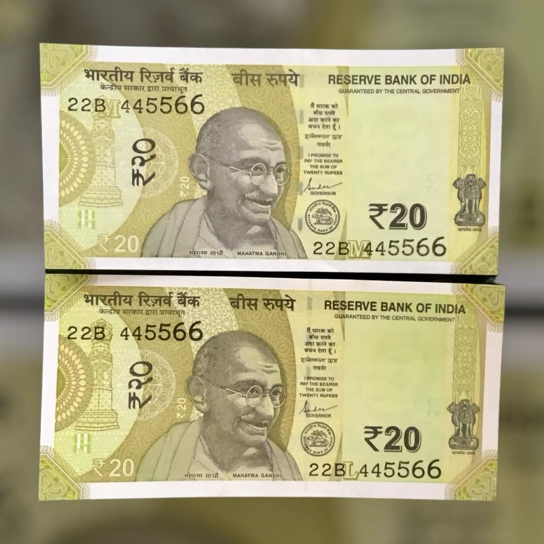 Rs 20 TWIN PAIR NOTE BOTH NUMBER SAME