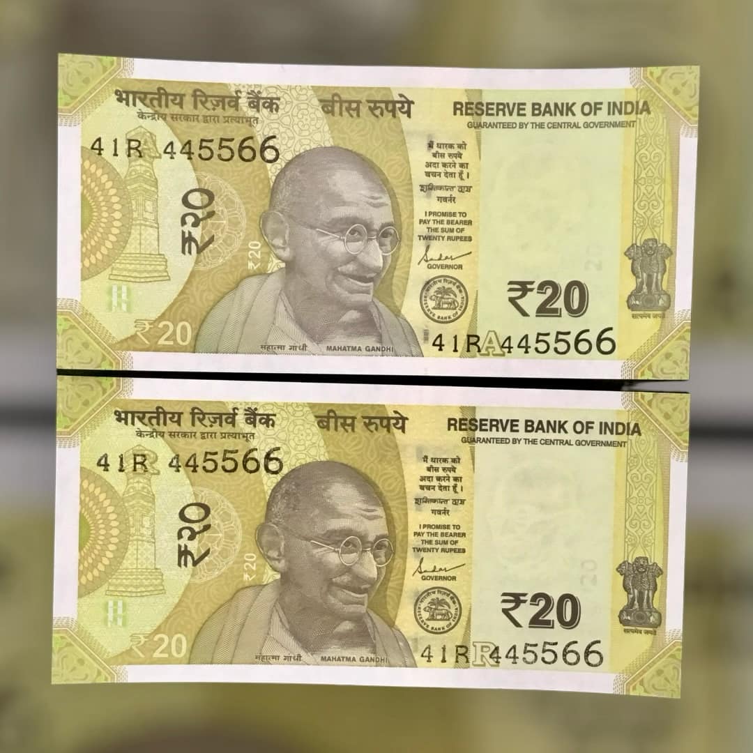 Rs 20 INDIA Banknote SEMI FANCY TWIN SET 41R 445566 UNIQUE AND RARE