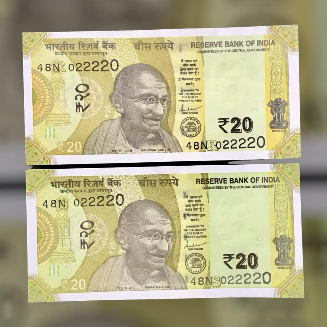 Rs 20 INDIA Banknote SEMI FANCY TWIN SET 48N 022220 UNIQUE AND RARE