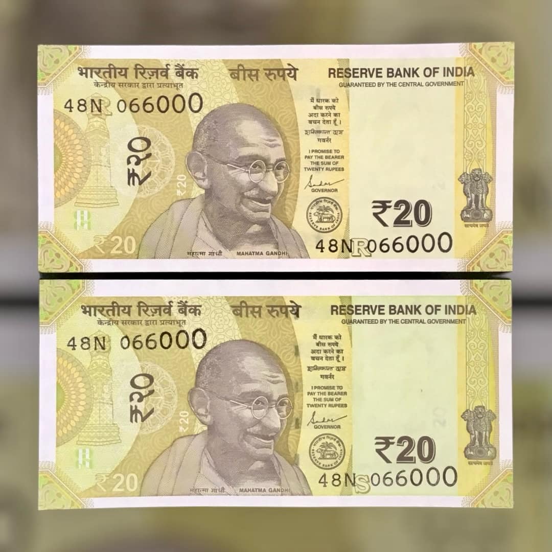 Rs 20 INDIA Banknote SEMI FANCY TWIN SET 48N 066000 UNIQUE AND RARE