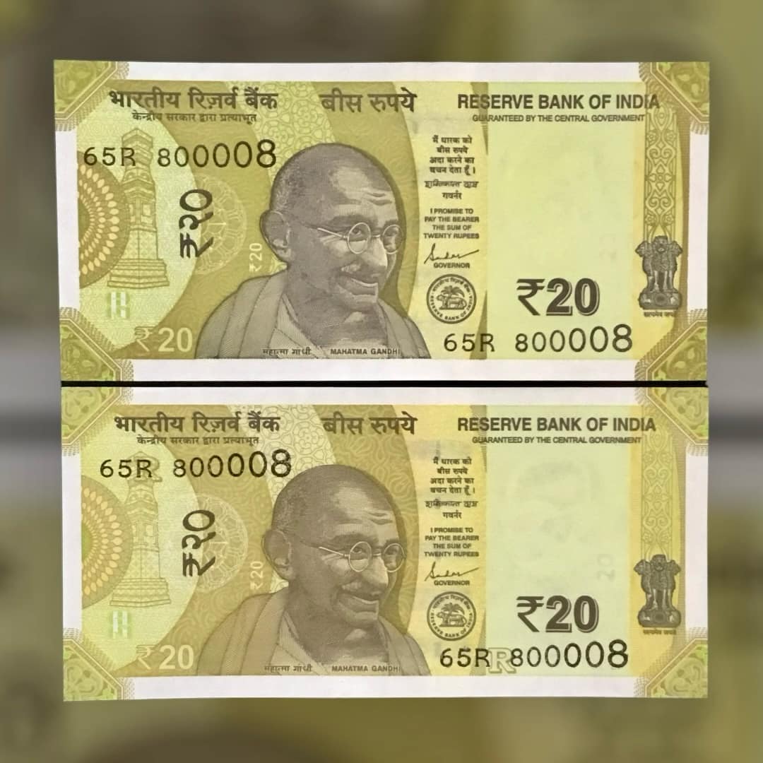 Rs 20 TWIN PAIR NOTE BOTH NUMBER SAME