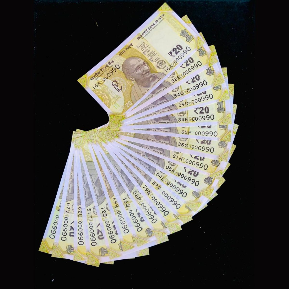 Rs 20 India Banknote Set 000770 GEM UNC UNIQUE 20 Note Complete Alphabet Set GEM UNC