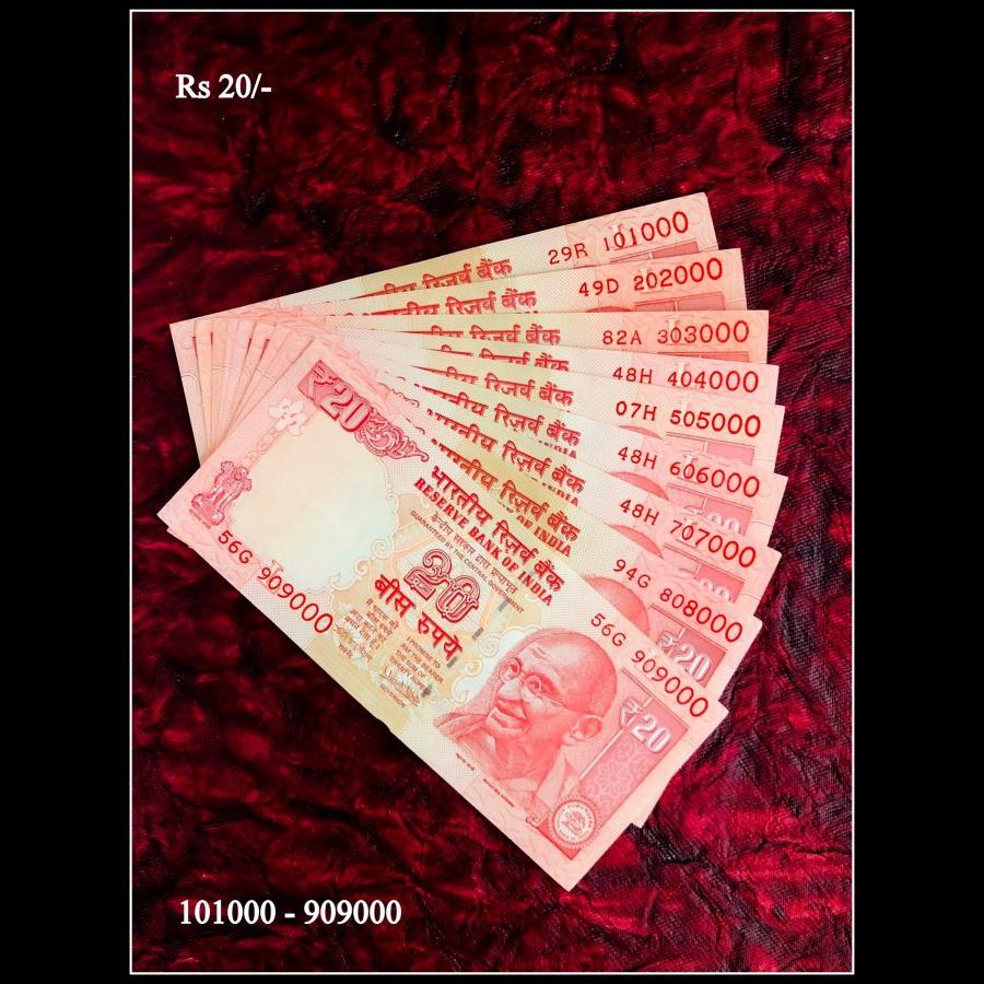Rs 20 INDIA BANKNOTE SET 101000 to 909000 GEM UNC UNIQUE 9 Note set Telescope Issue