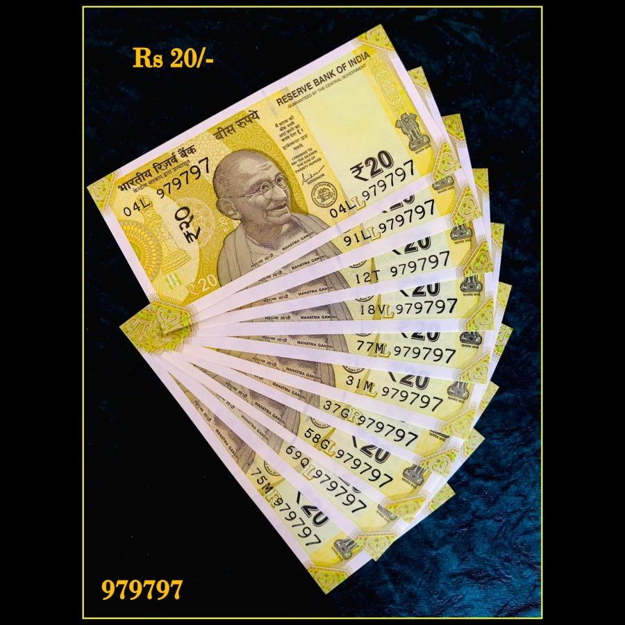 Rs 20 INDIA BANKNOTE TRIPLING 10 NOTE SET 979797