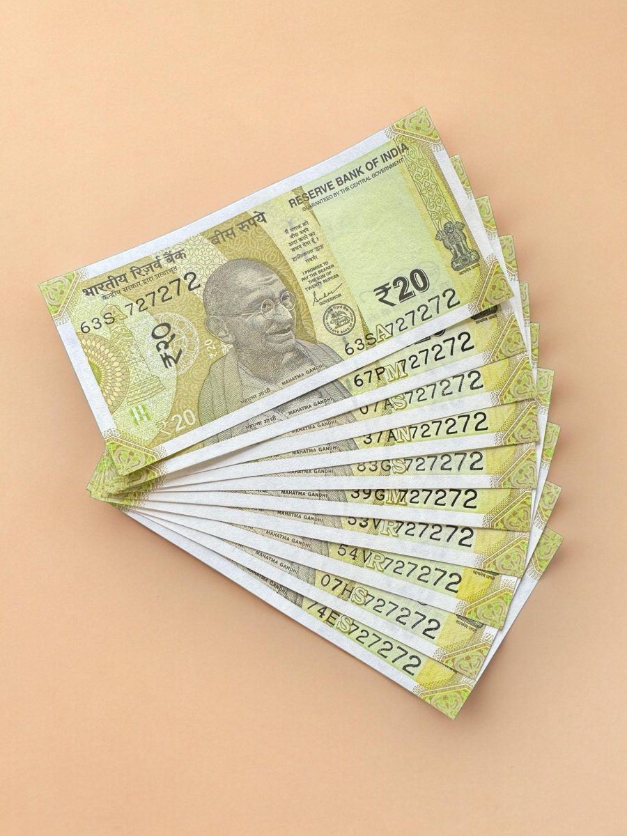 This Rs 20 India banknote triple number 10 note set with the unique number 727272 is a rare gem in uncirculated condition. Issued by the Reserve Bank of India, this collectible piece showcases a special tripling number pattern that makes it highly sought after by enthusiasts and collectors alike. The banknote holds a significant place in economic history, reflecting the evolution of currency over the years. With a fascinating array of errors, governor issues, and more, this banknote is a valuable addition to any collector’s treasury. Its impeccable condition, along with its unique numbering, adds to its allure and collectible value. Ideal for those looking to invest in unique and rare banknotes.