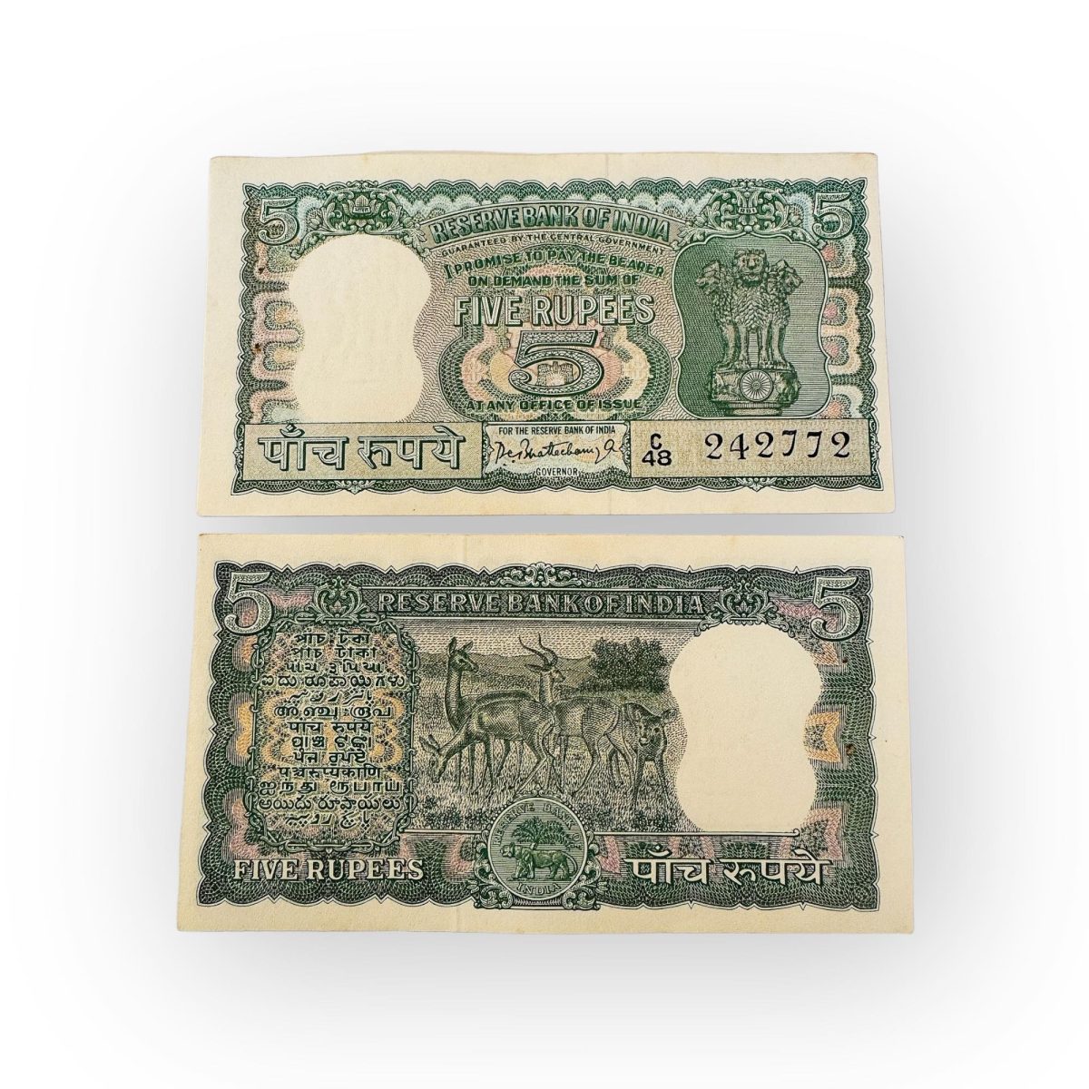 Rs 5/- India Banknote Diamond Issue Signed By PC Bhattachariya 4 Deer Issue Very Unique and Rare 1960s Issue