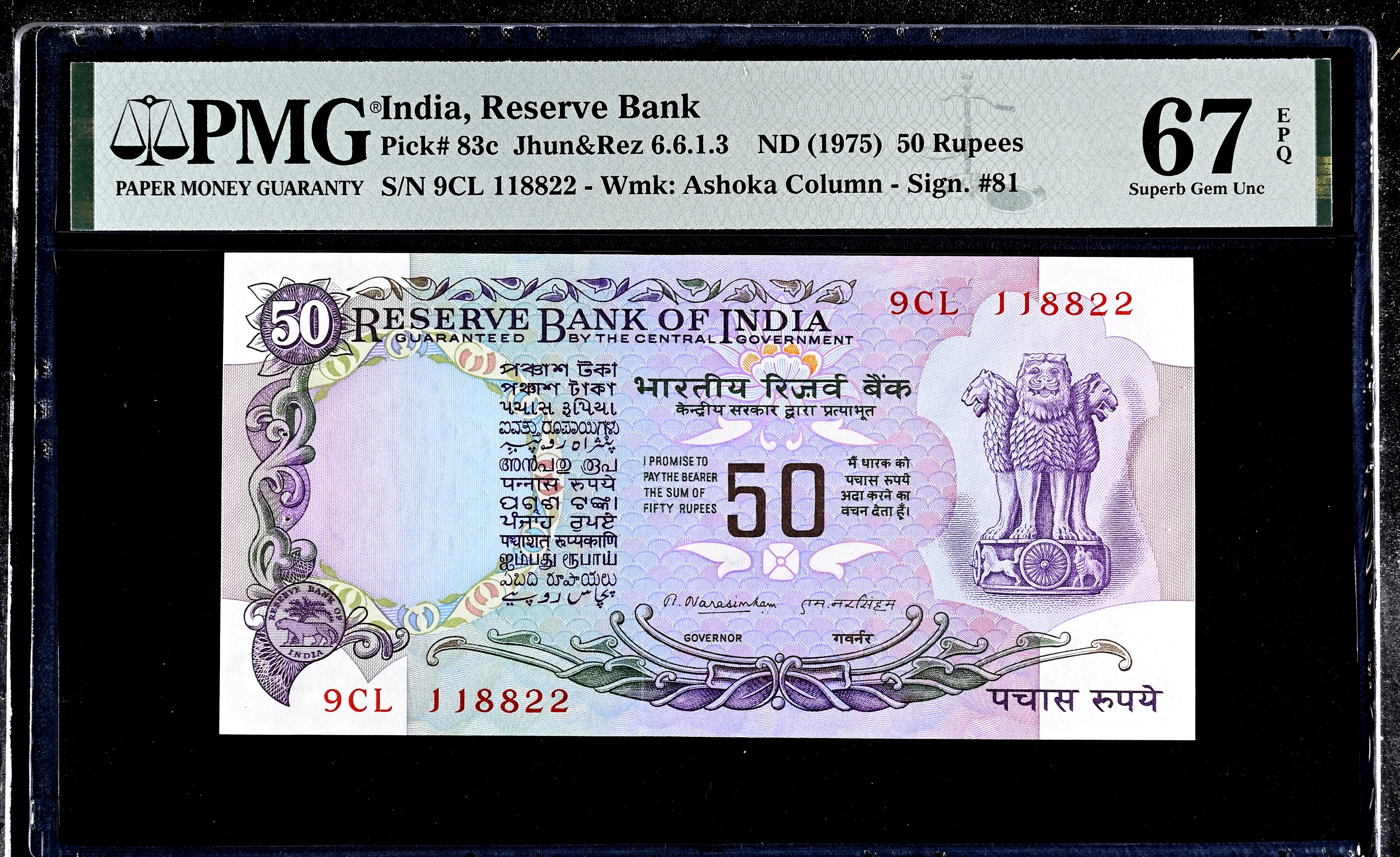 Rs 50 India Banknote Graded By PMG 67 Issue By N Narasingham Unique and Rare TOP POP
