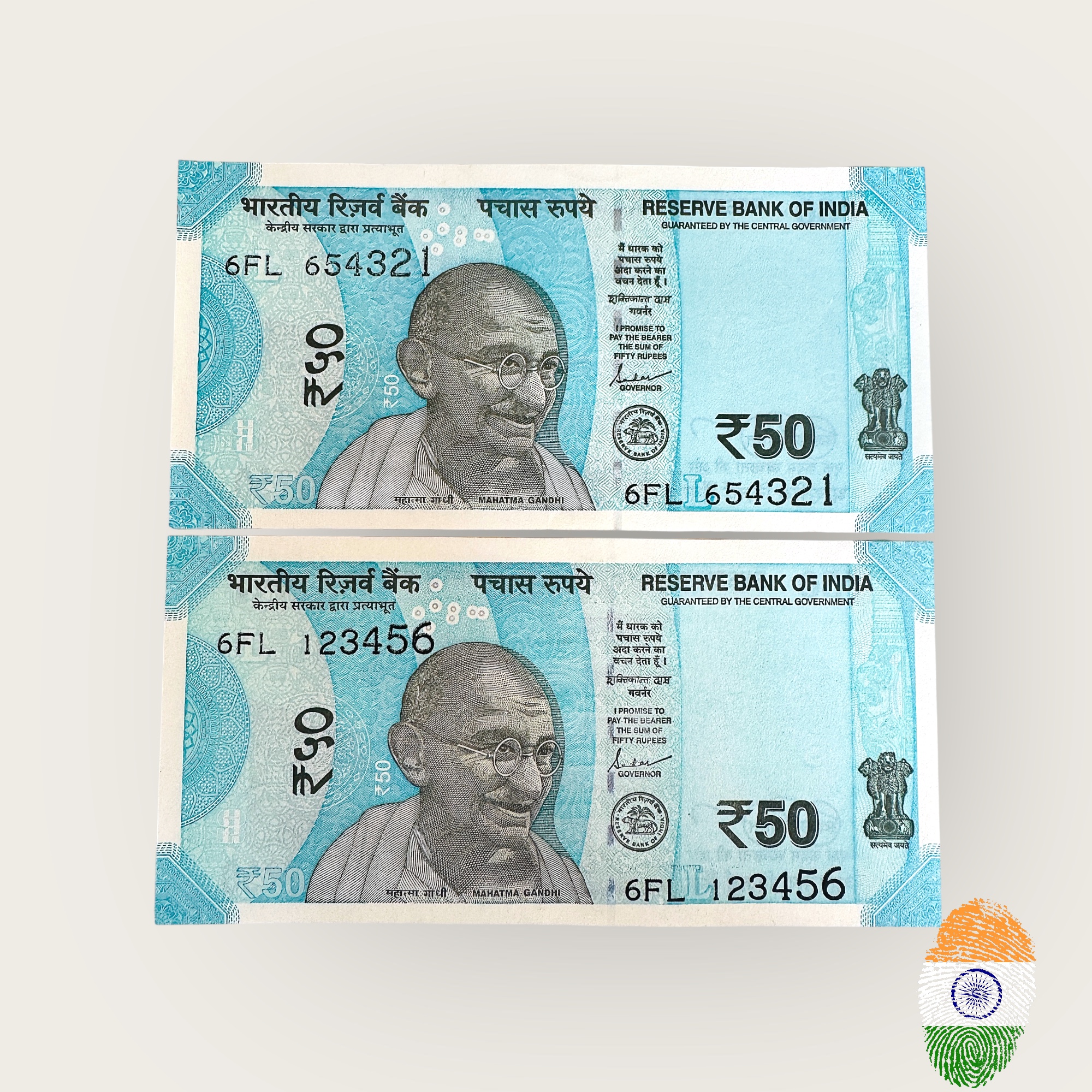 Rs 50 India Banknote Running Fancy Number Same Prefix 123456 and 654321 Unique and Rare