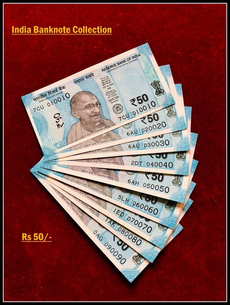Rs 50/- India Banknote Solid Set Gem Unc 010010 to 090090 Latest Issue Unique and Rare