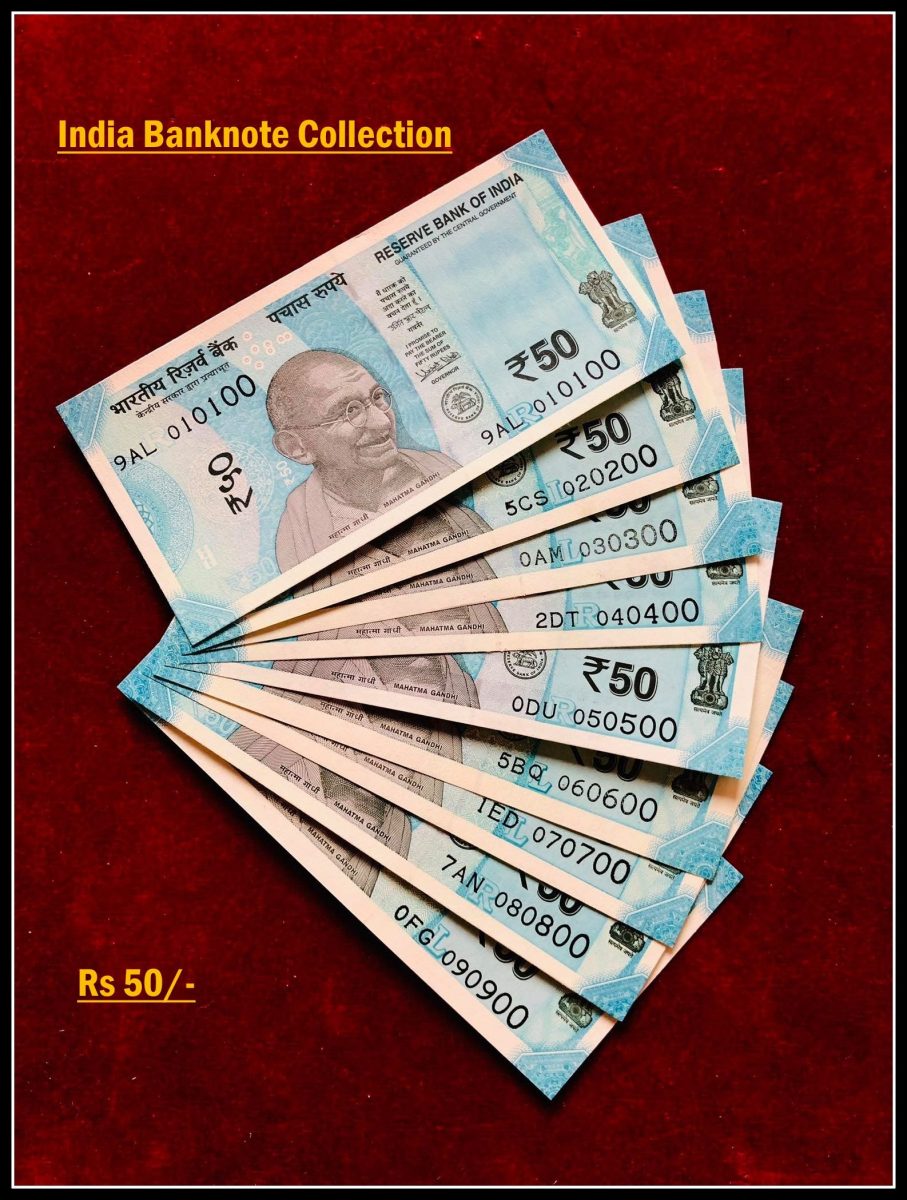 Rs 50/- India Banknote Solid Set Gem Unc 010100 to 090900 Latest Issue Unique and Rare