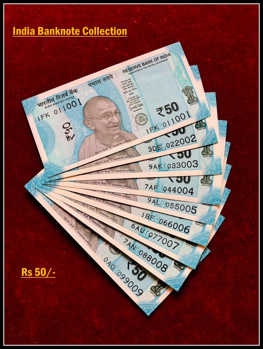 Rs 50/- India Banknote Solid Set Gem Unc 011001 to 099009 Latest Issue Unique and Rare