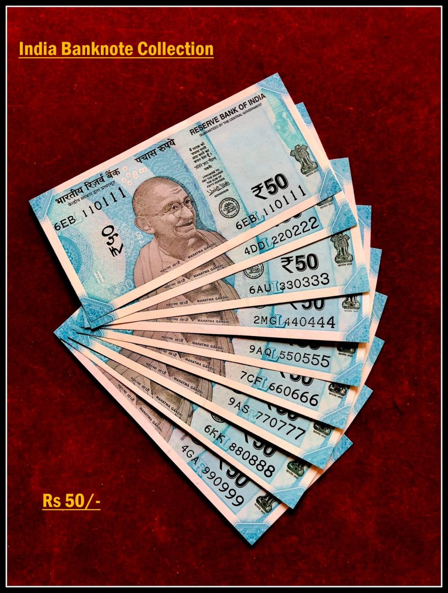 Rs 50/- India Banknote Solid Set Gem Unc 110111 to 990999 Latest Issue Unique and Rare