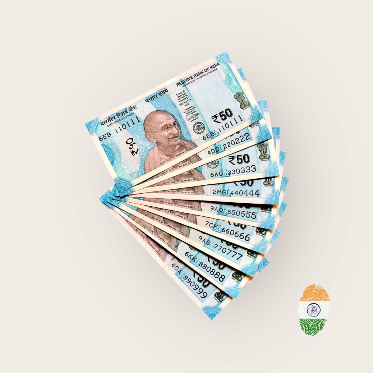 Rs 50 India Banknote Solid Set Gem Unc 110111 to 990999 Latest Issue Unique and Rare